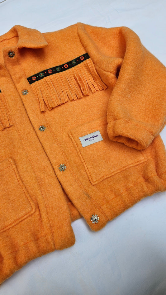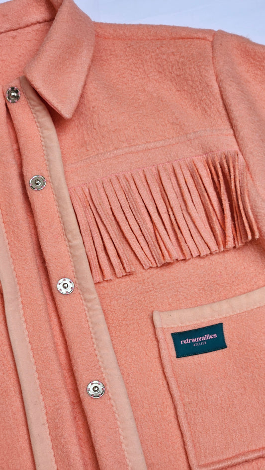 Veste couverture à franges et galon vintage