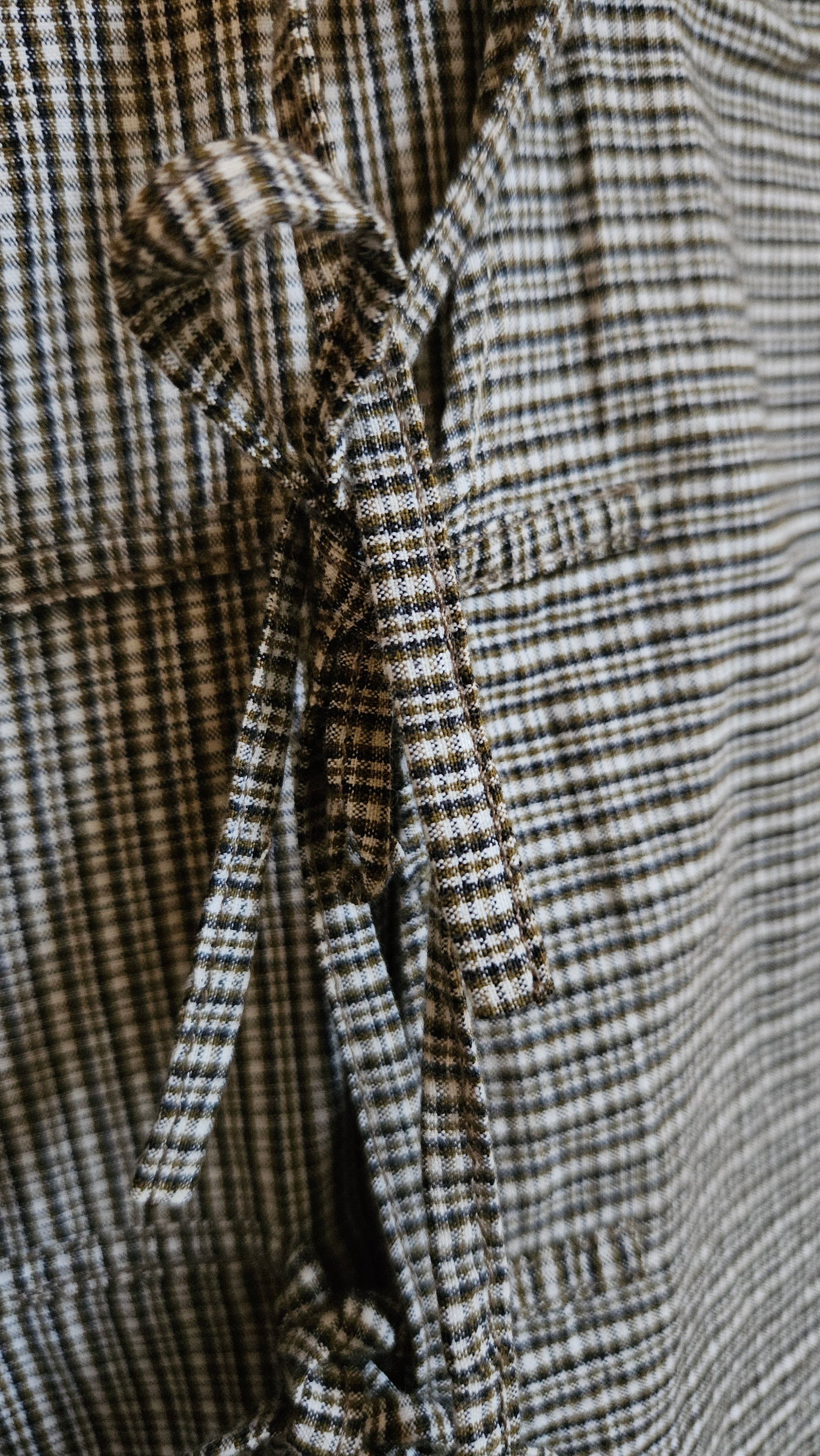 Tissu 100% coton carreaux plaid écru/beige/marron/noir