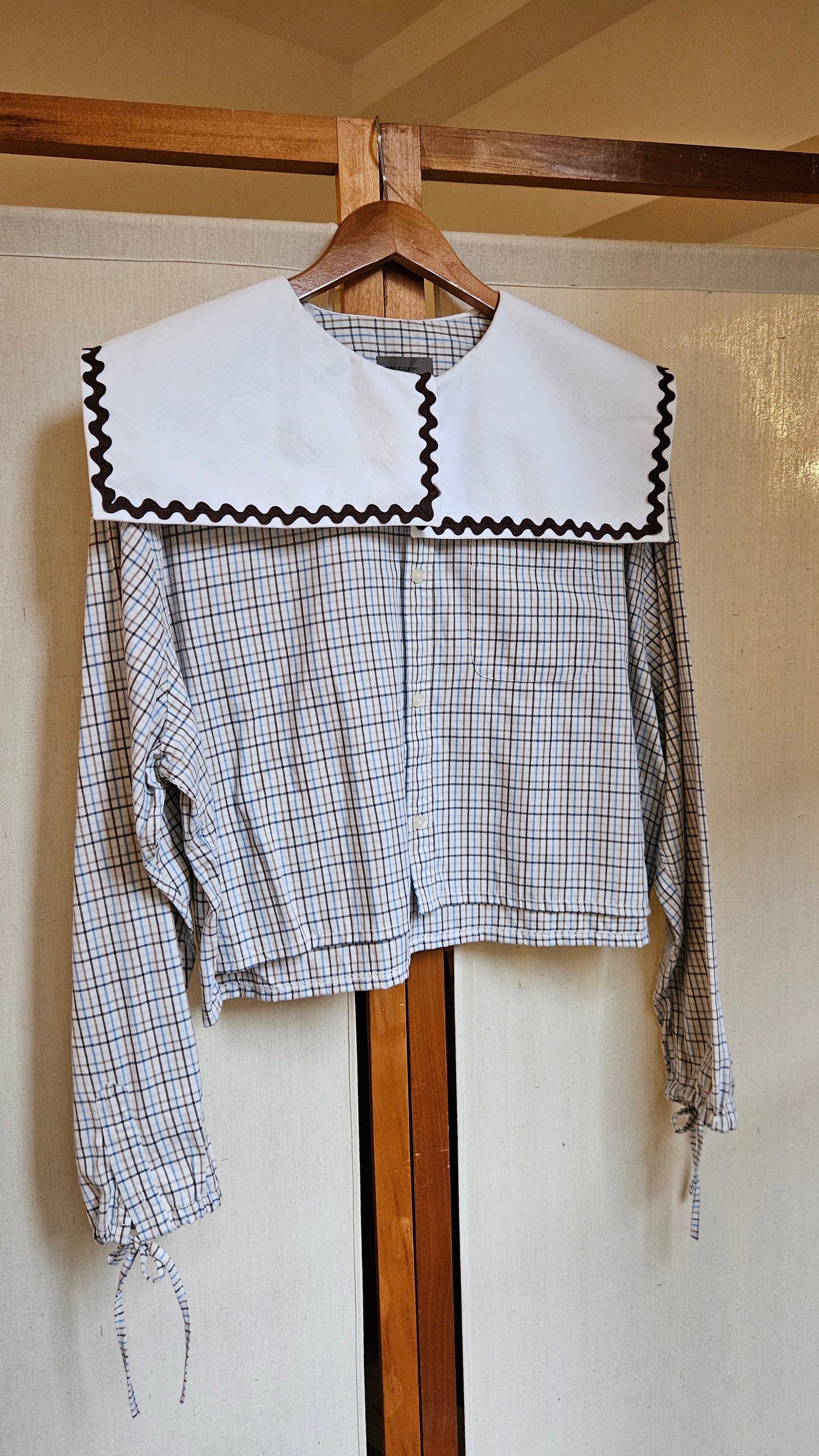 Col XXL inspiré de la marine, drap blanc en coton et serpentine marron