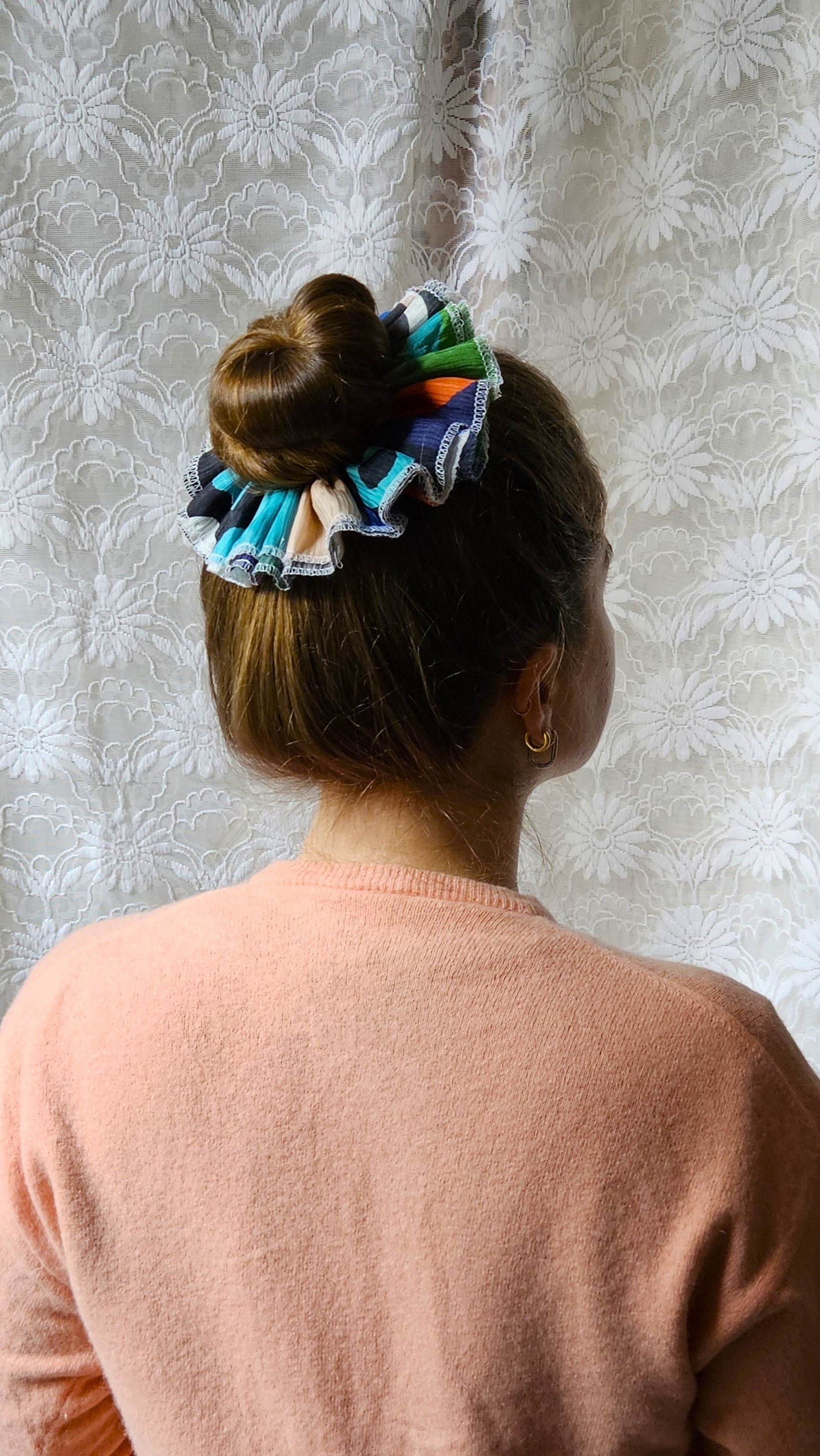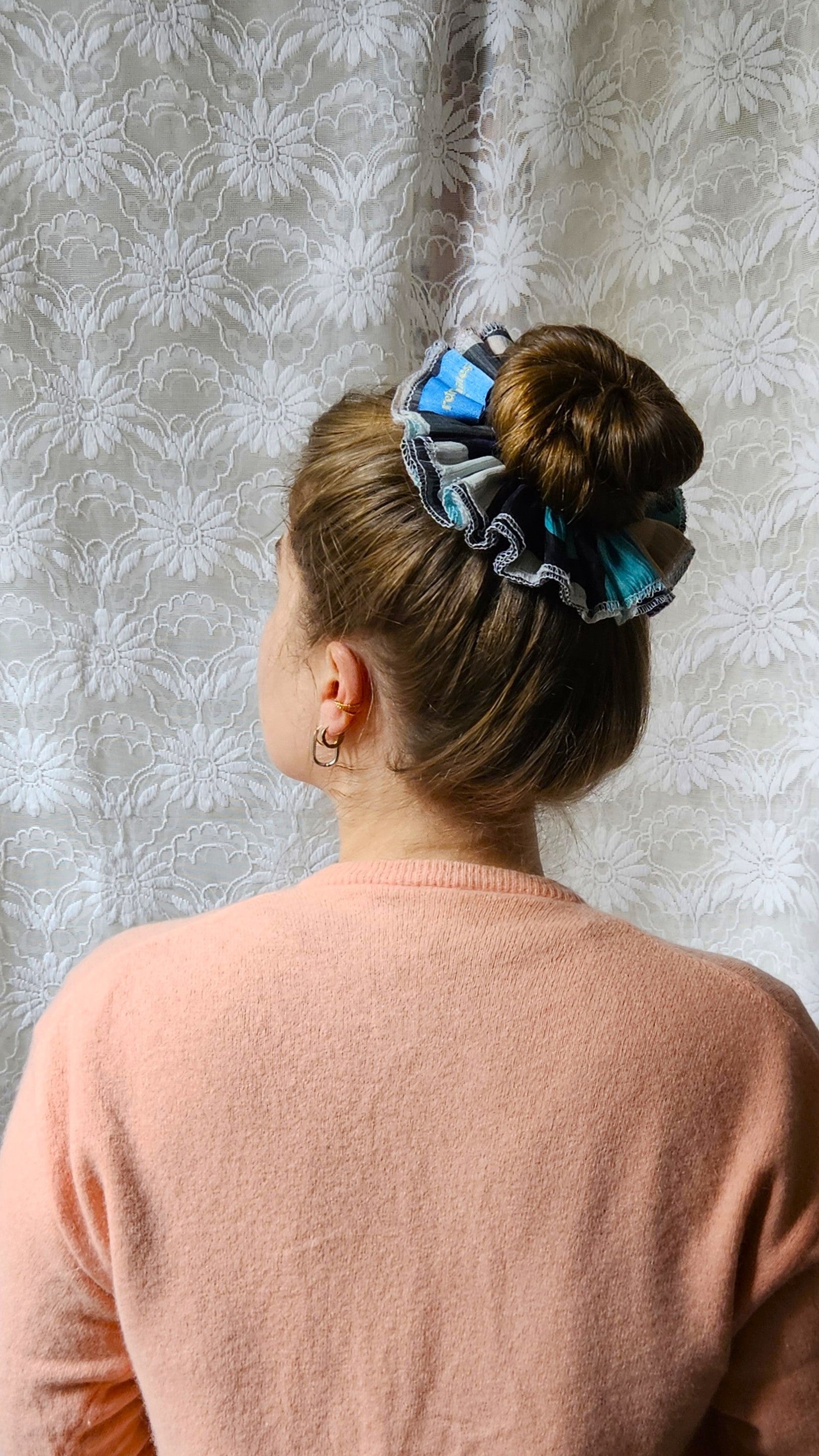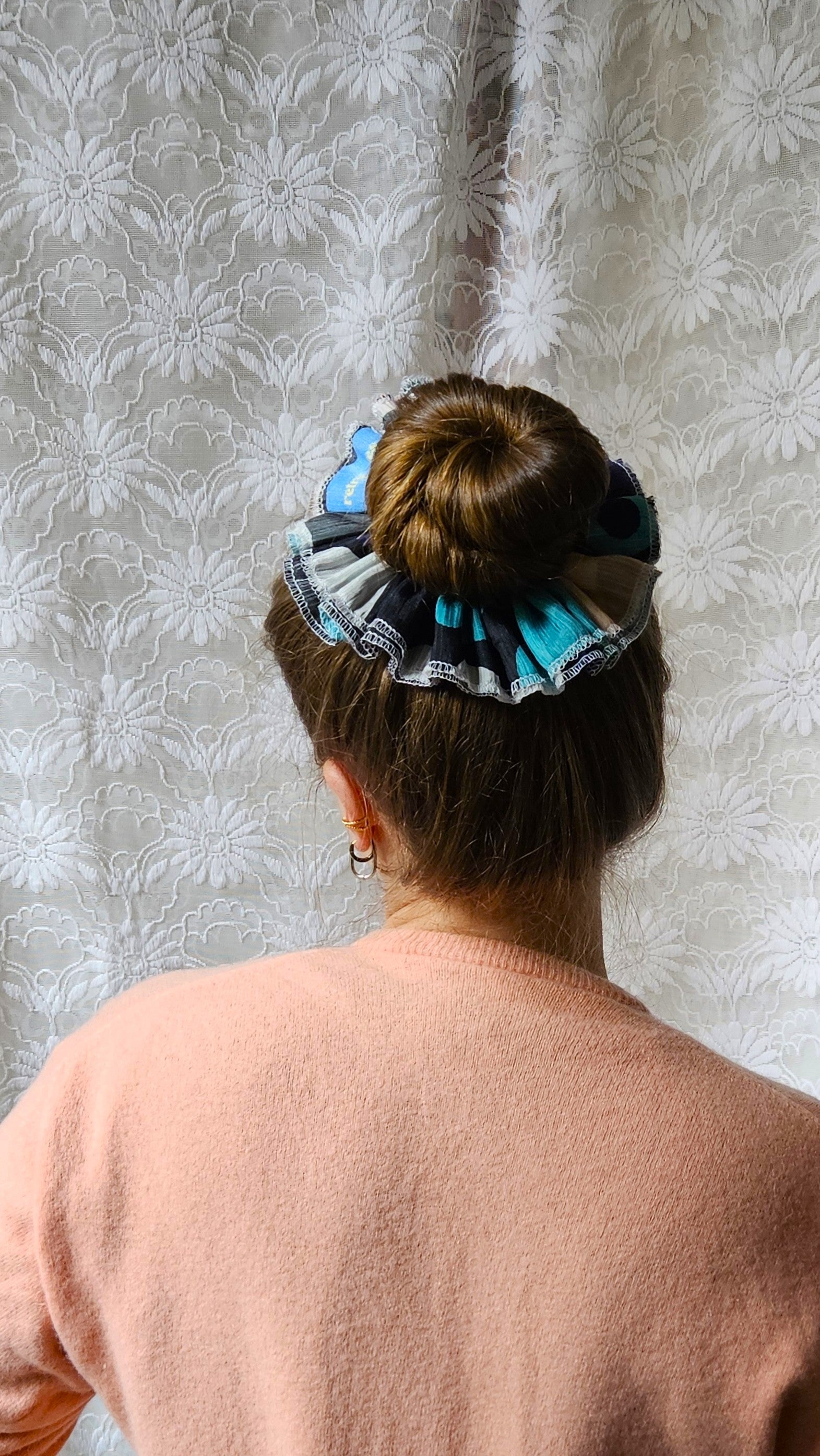Chouchou XL créé à partir d'un foulard troué.