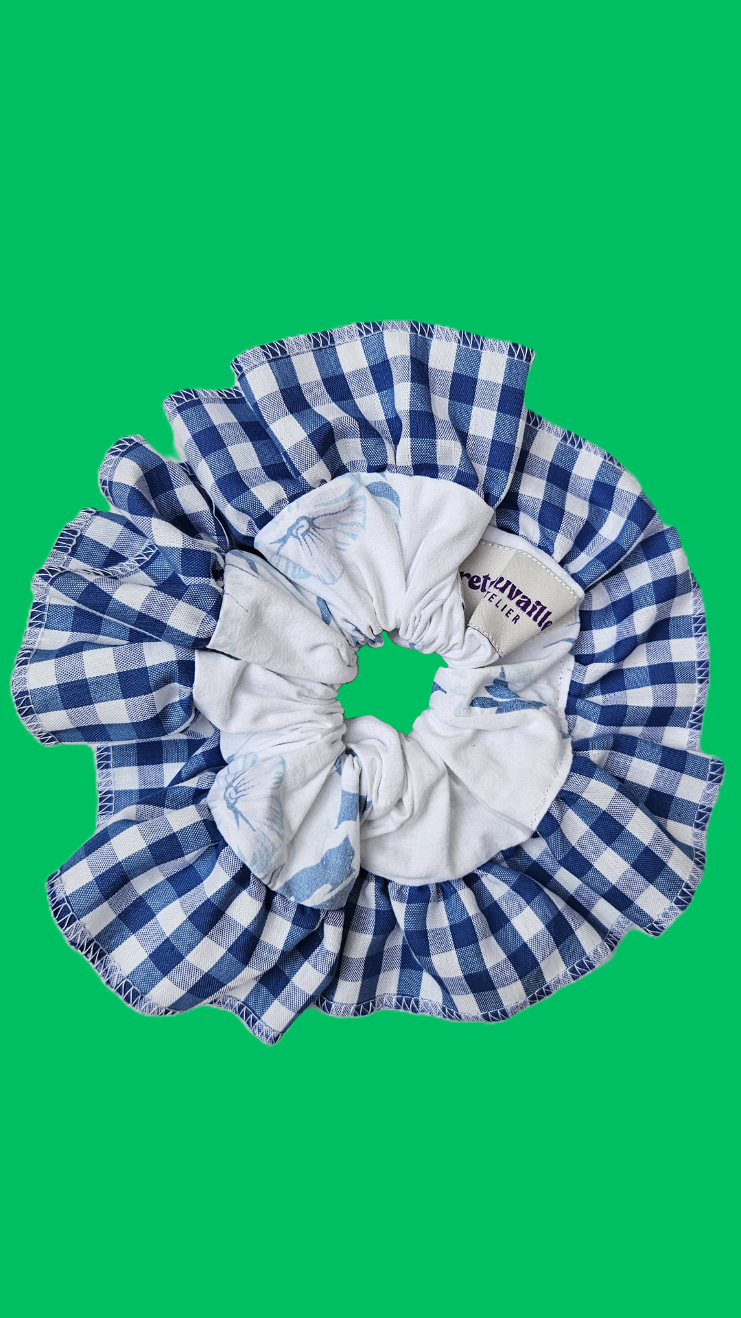Coton blanc imprimé bleu et vichy bleu et blanc
