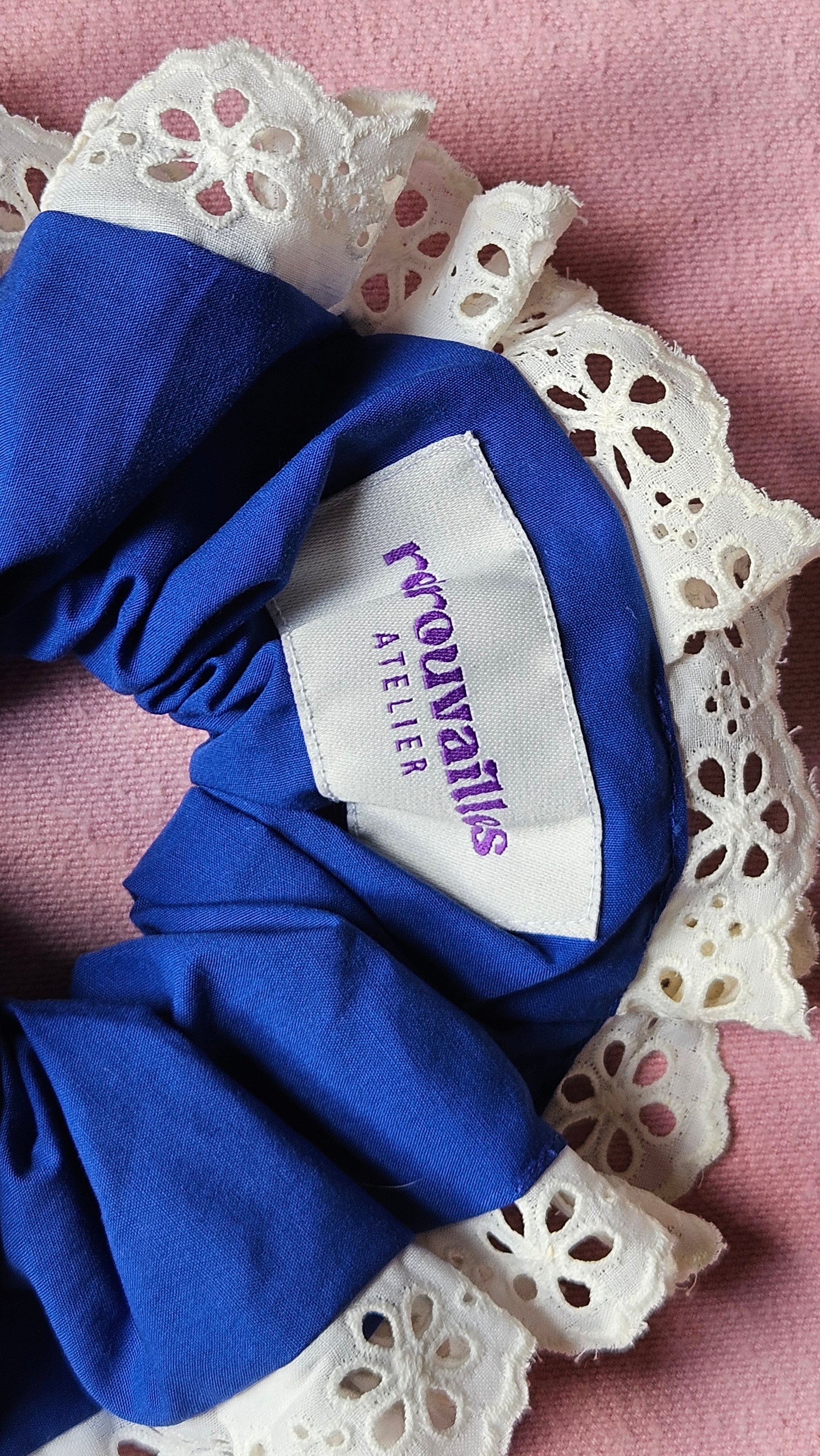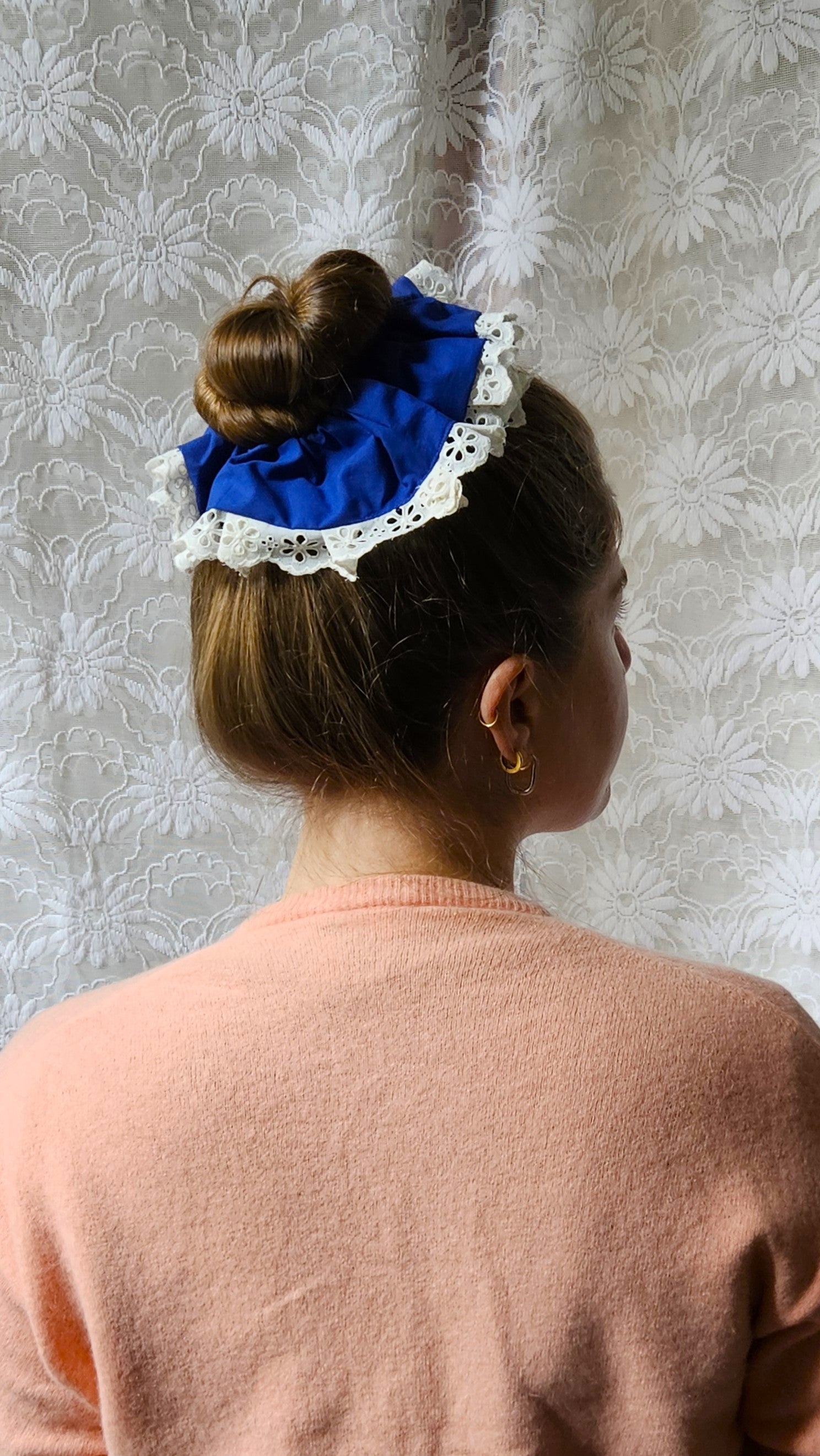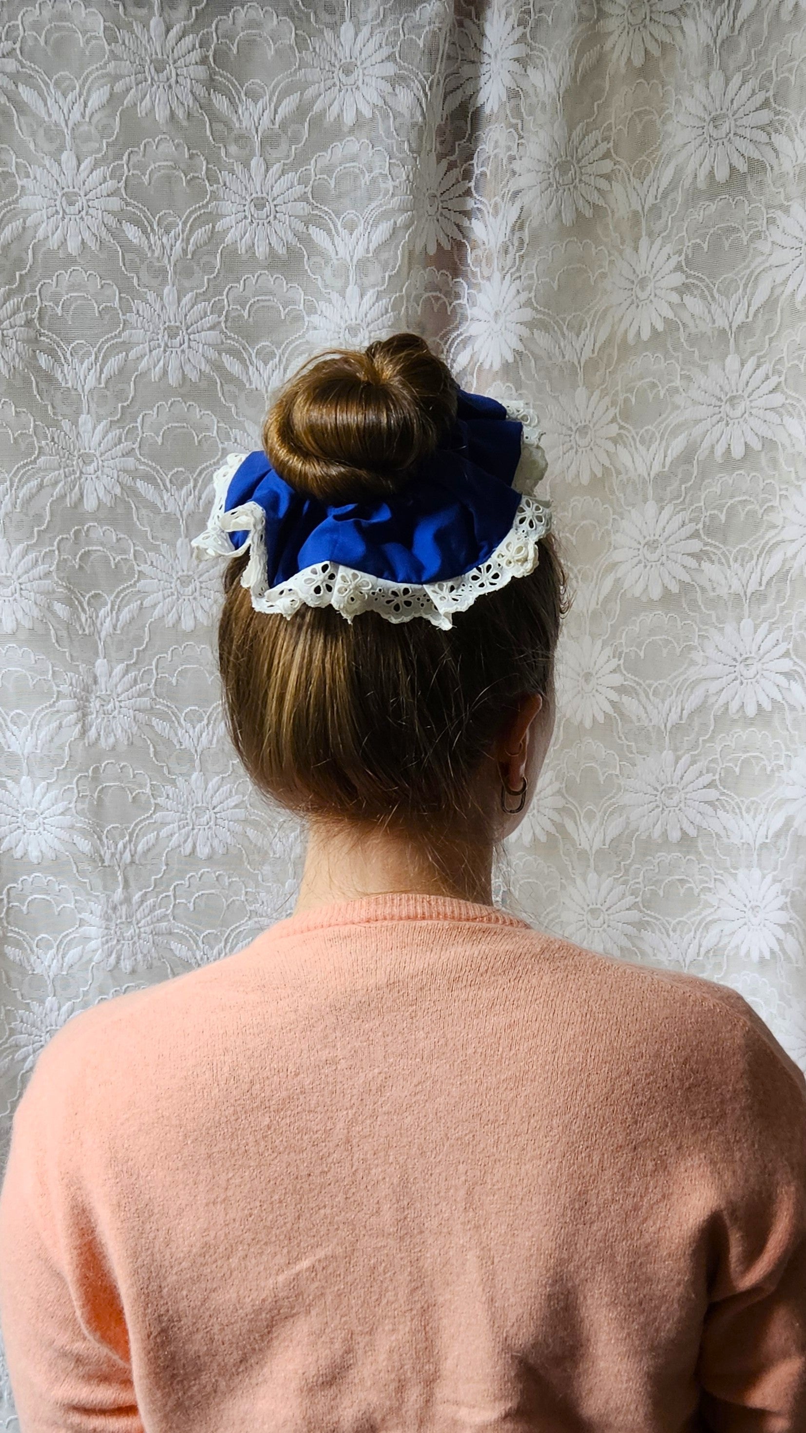 Chouchou XL créé à partir d'une chemise et d'une dentelle vintage.