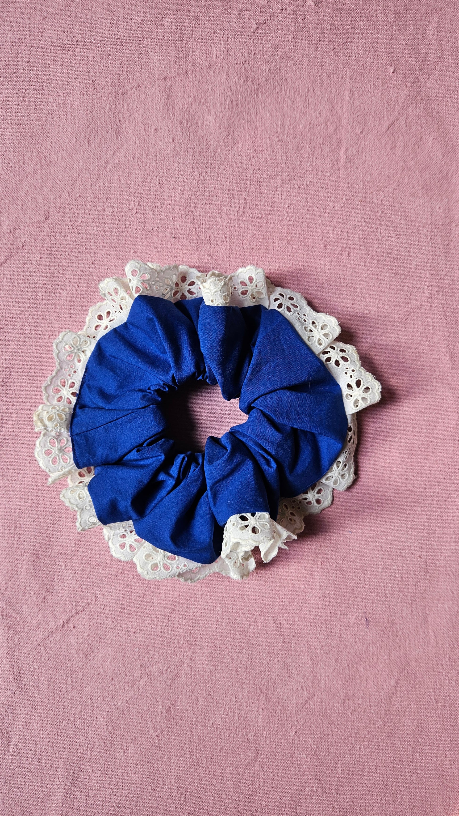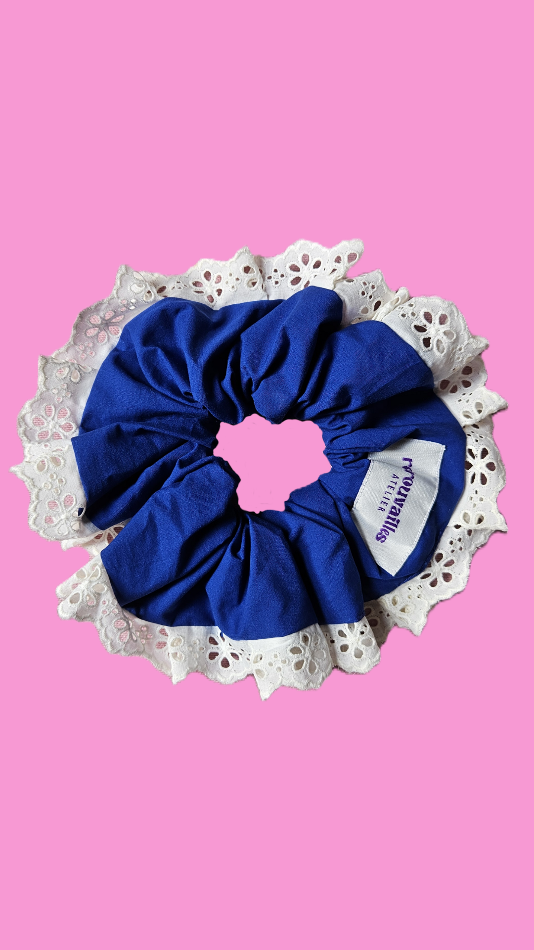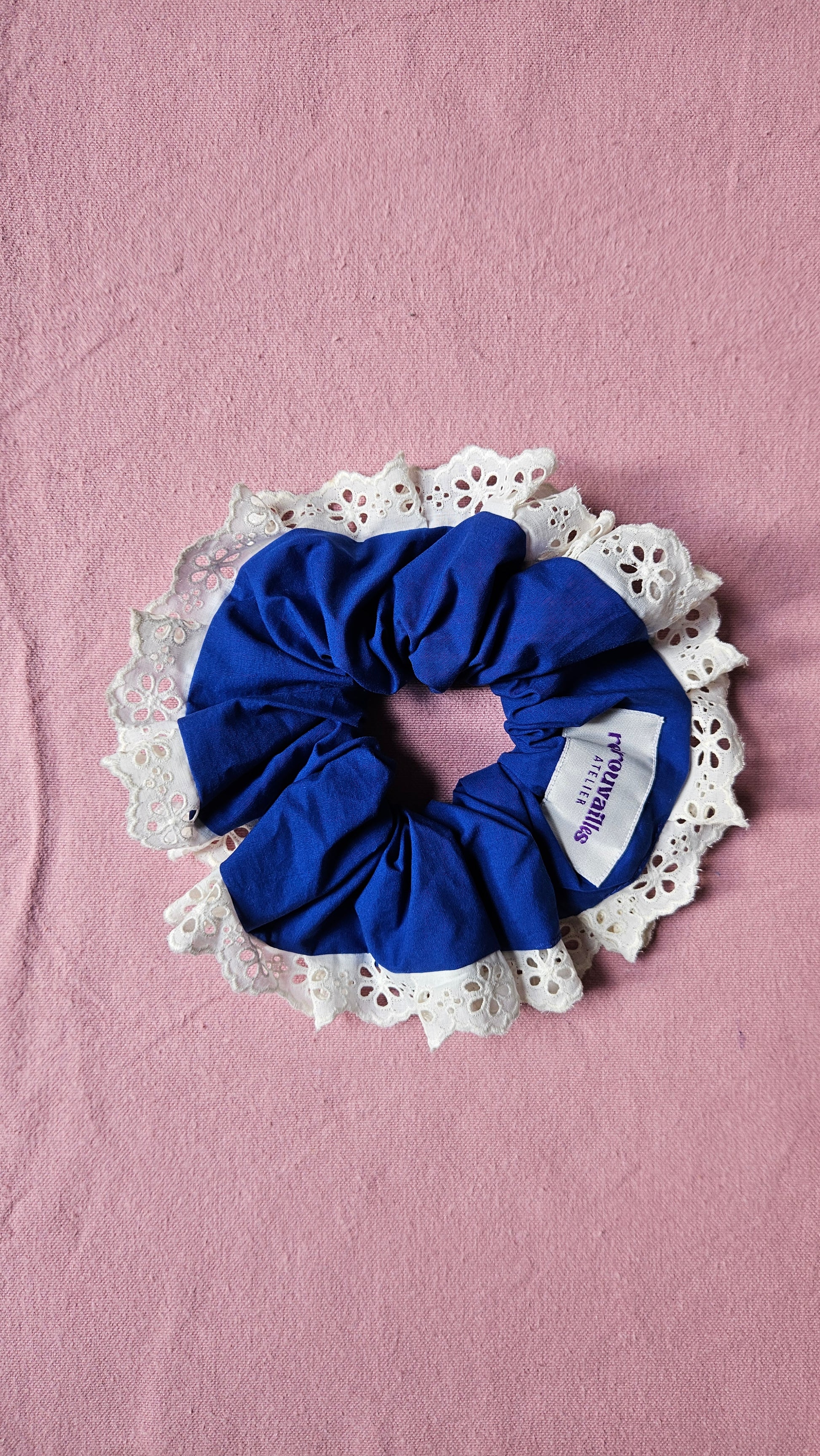 Chouchou XL créé à partir d'une chemise et d'une dentelle vintage.