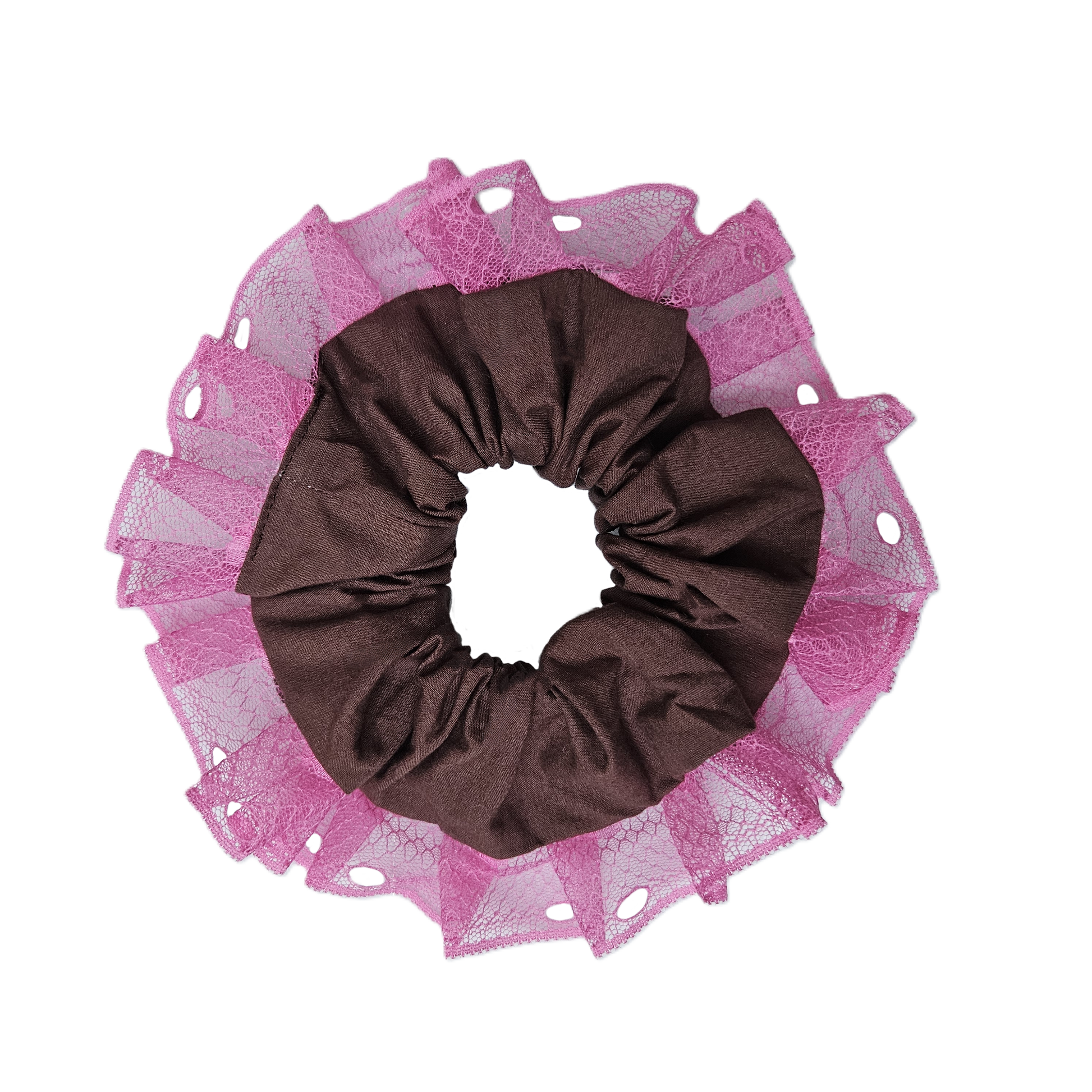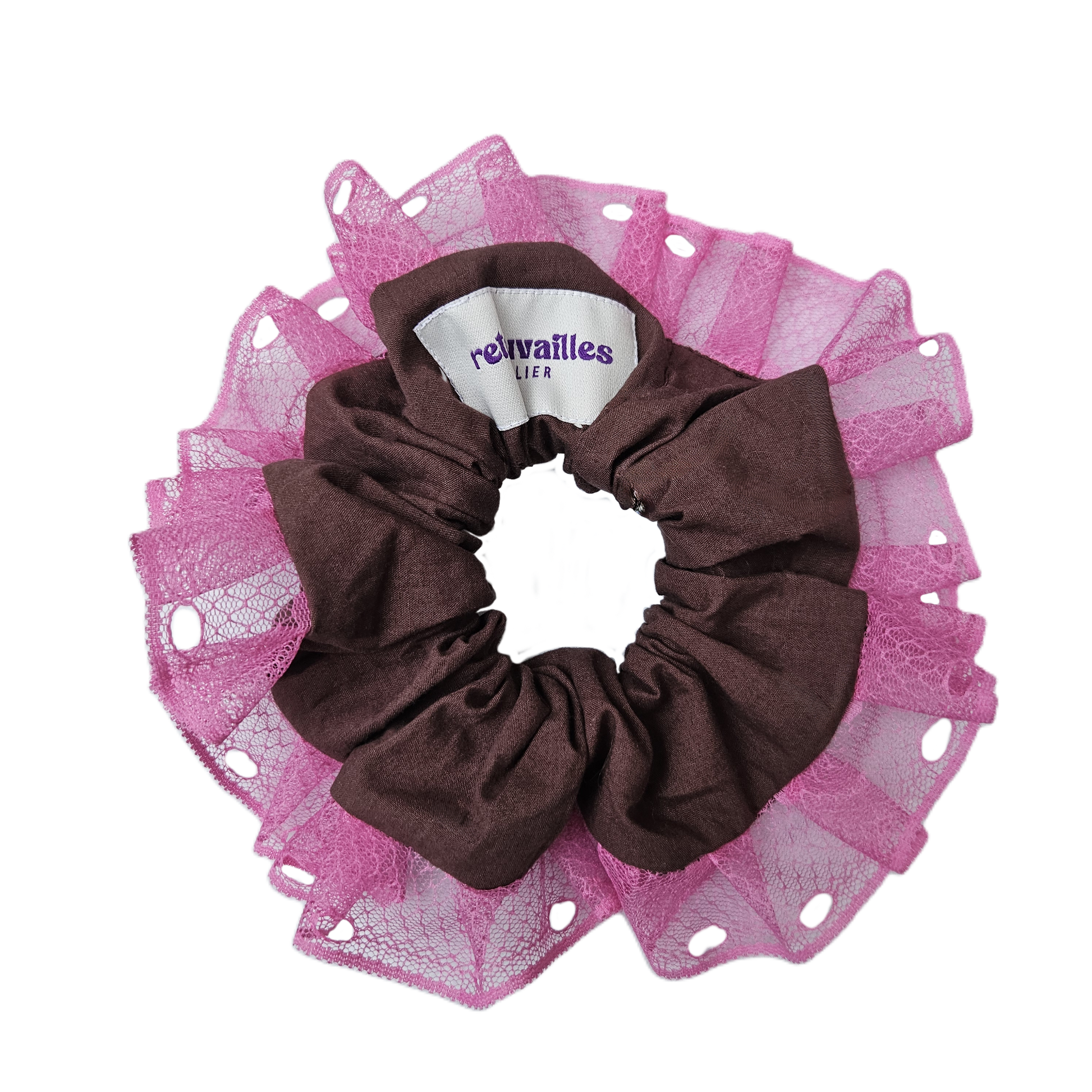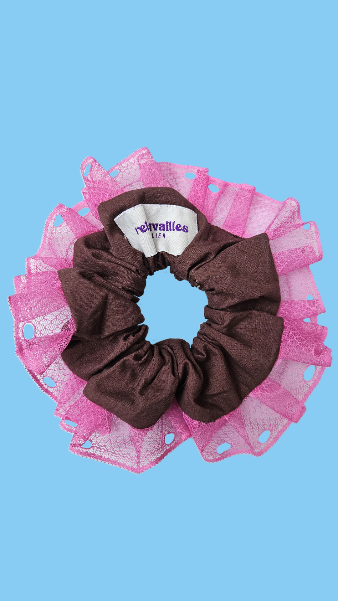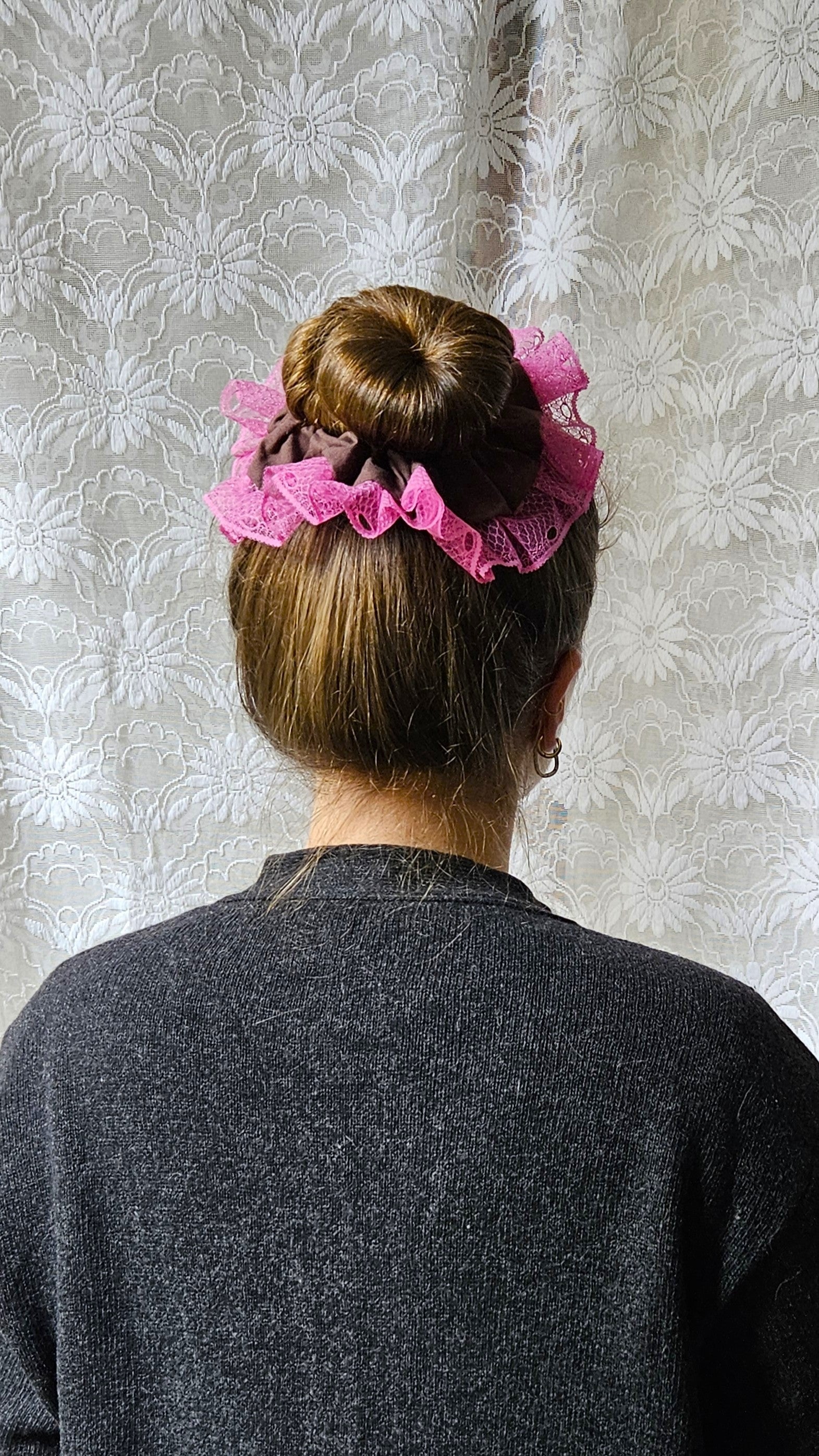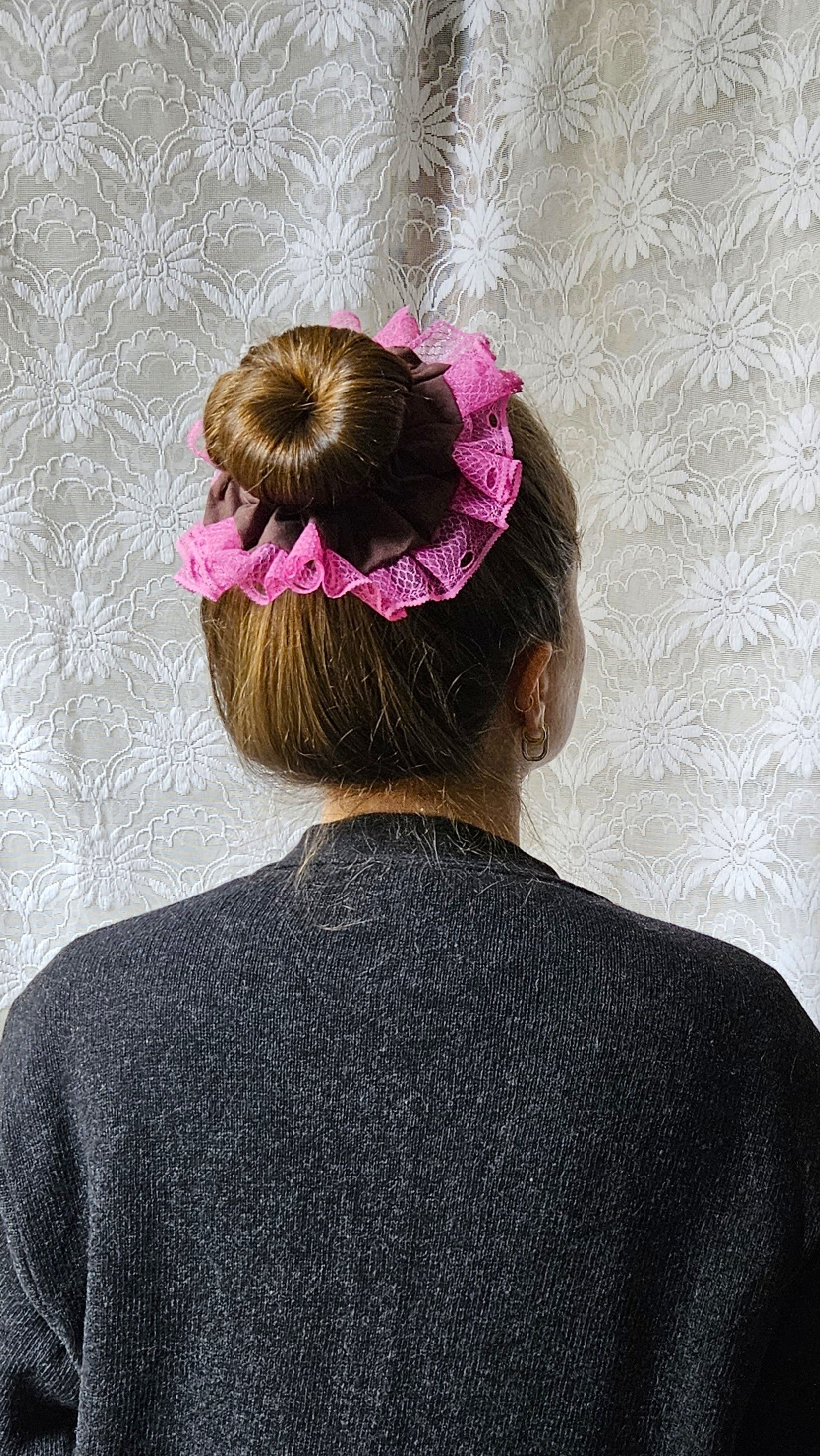 Chouchou XL créé à partir d'un drap et d'une dentelle vintage.