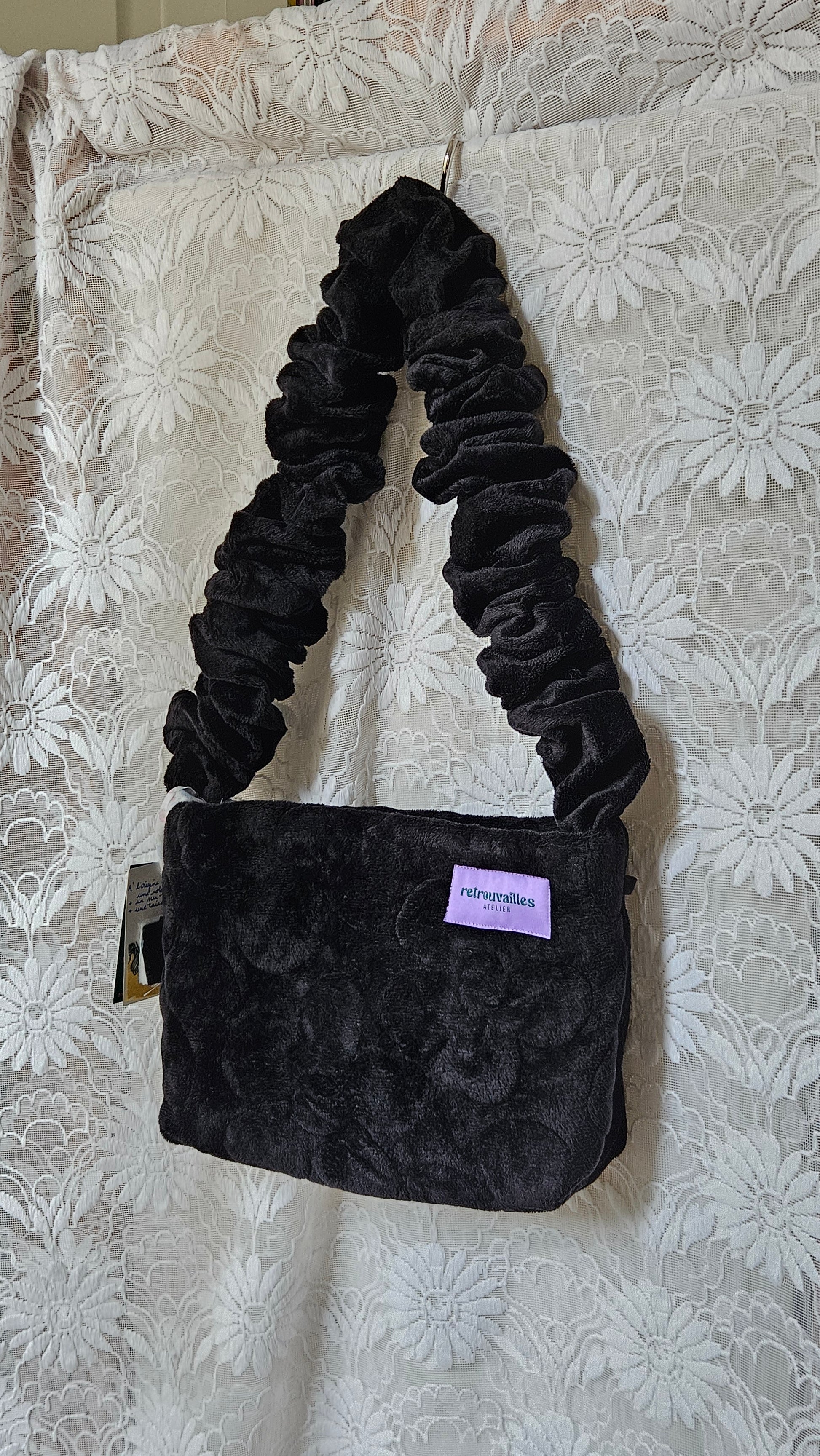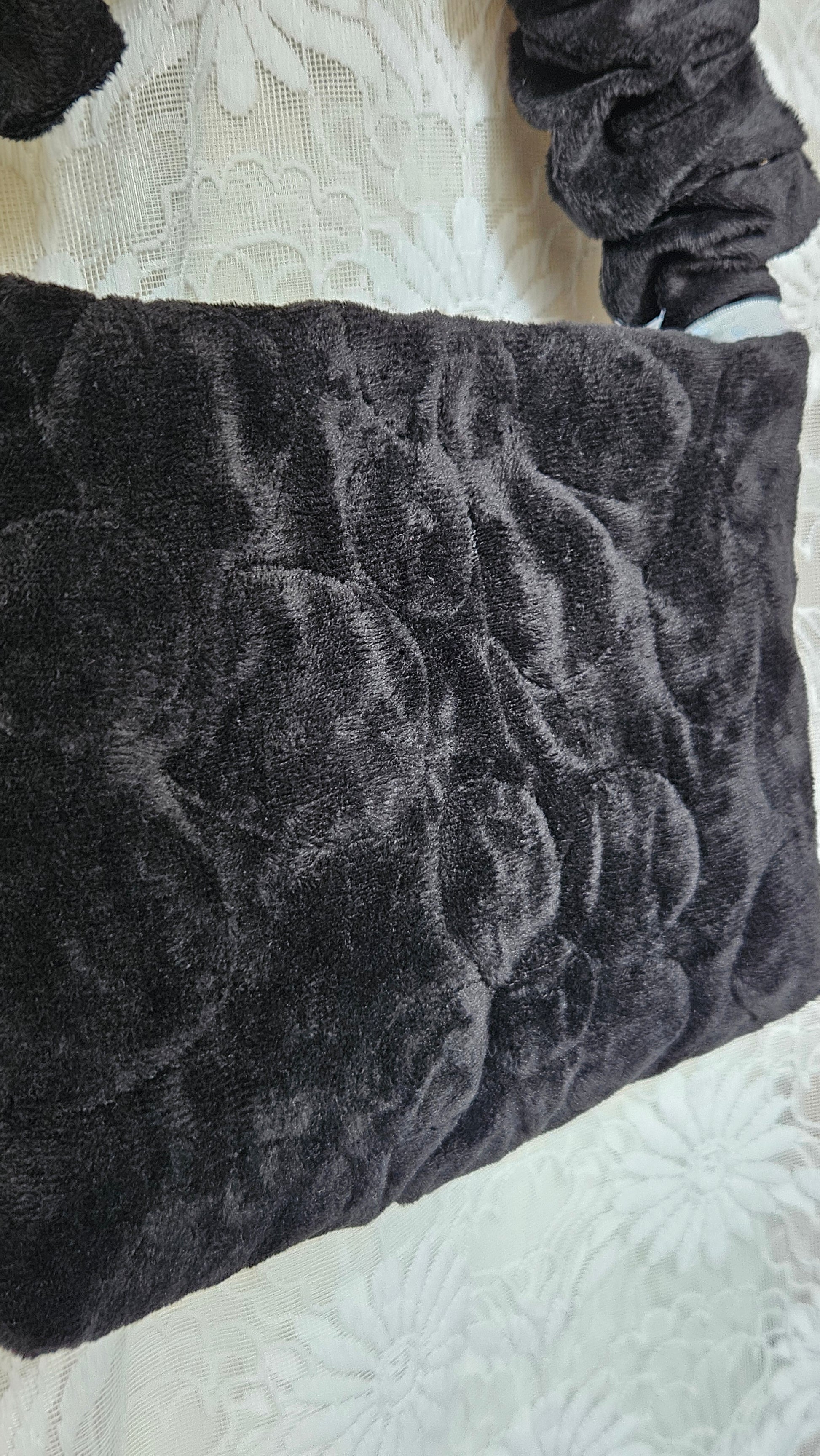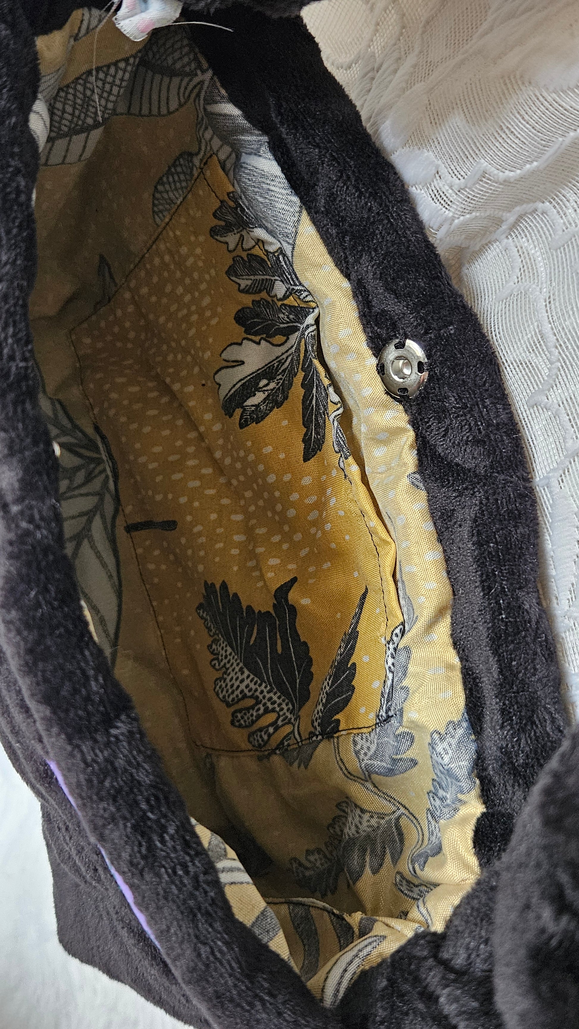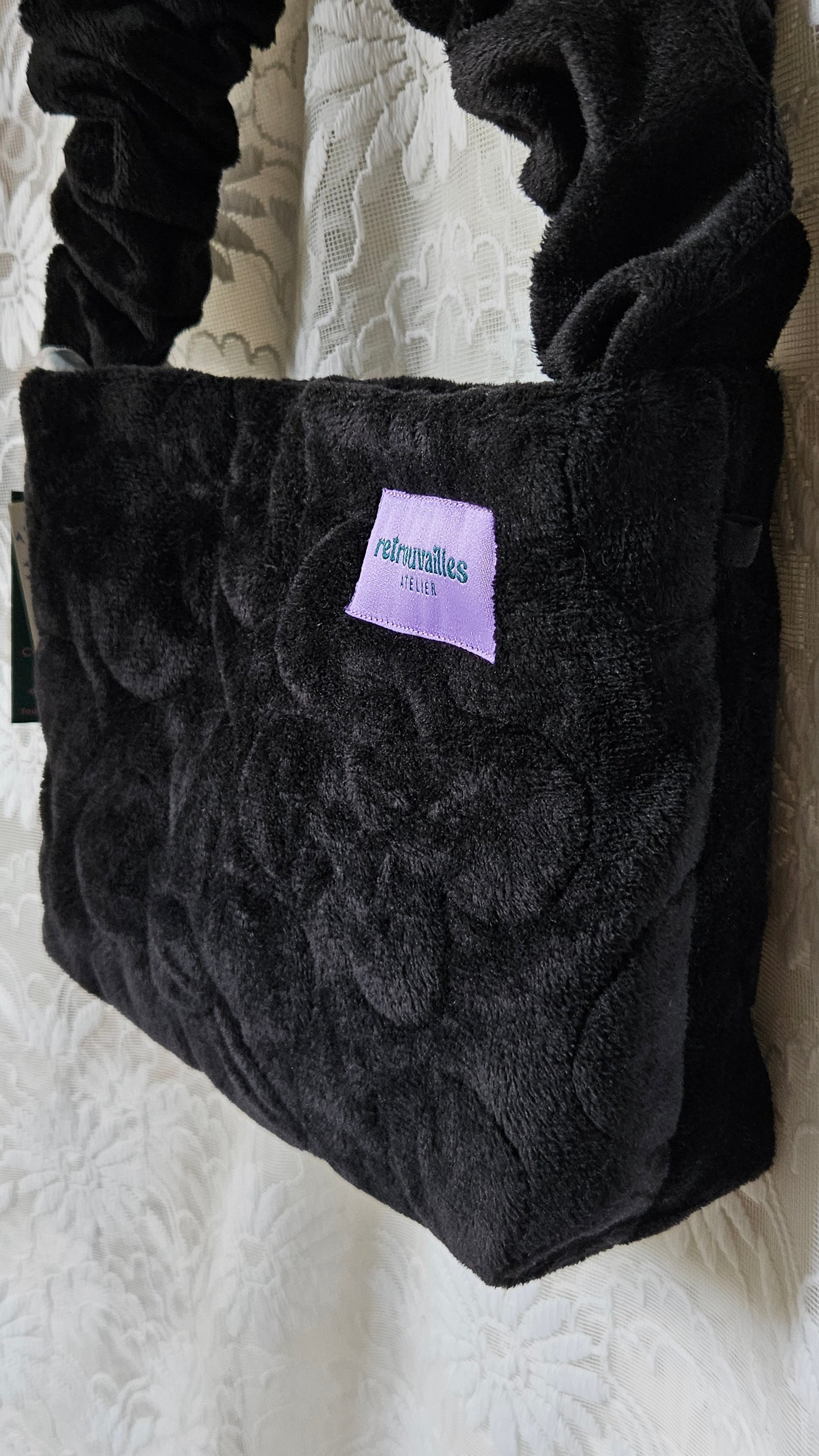 Tissu principal : tissu fausse fourrure synthétique noir, matelassage fleurs