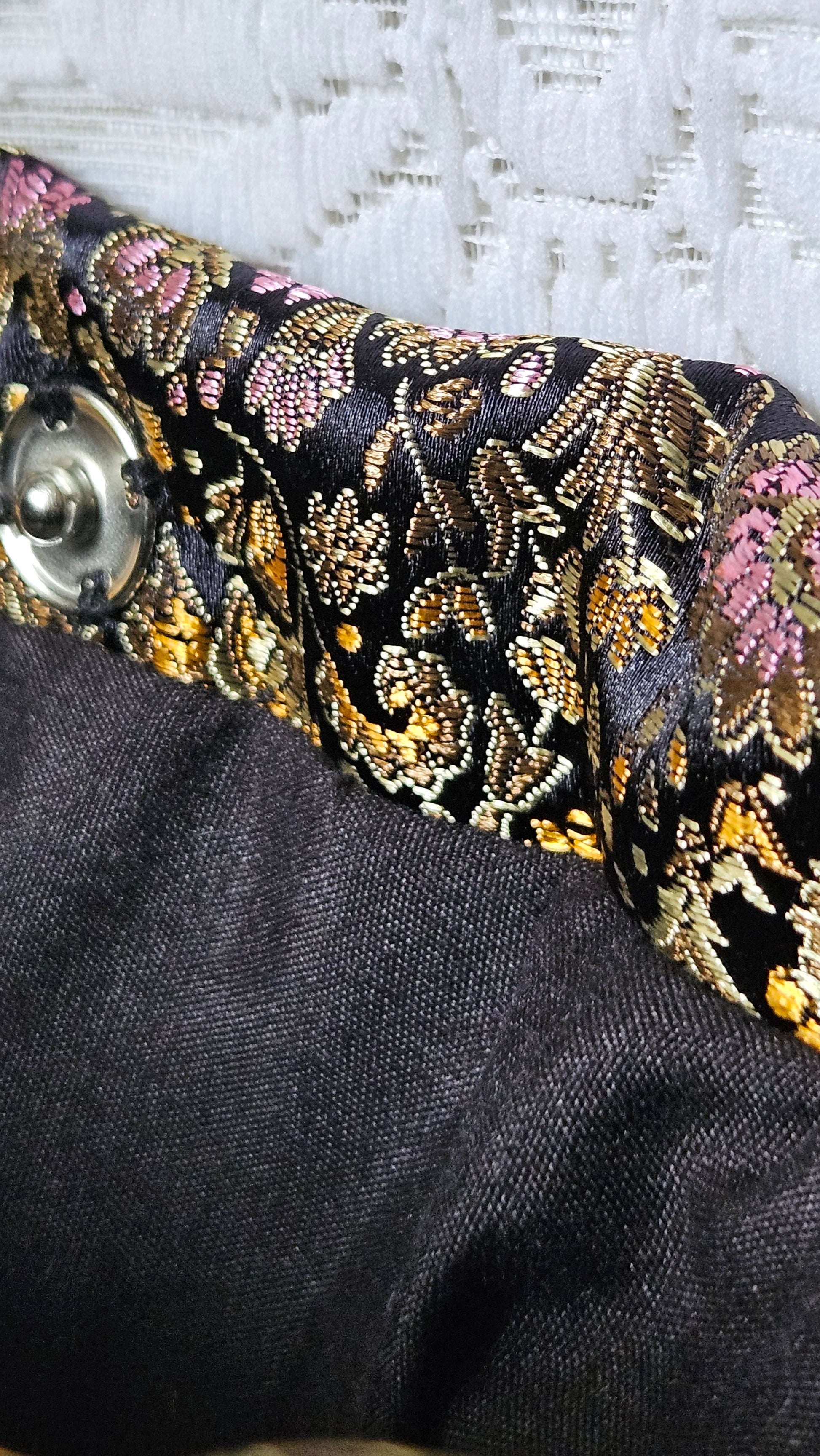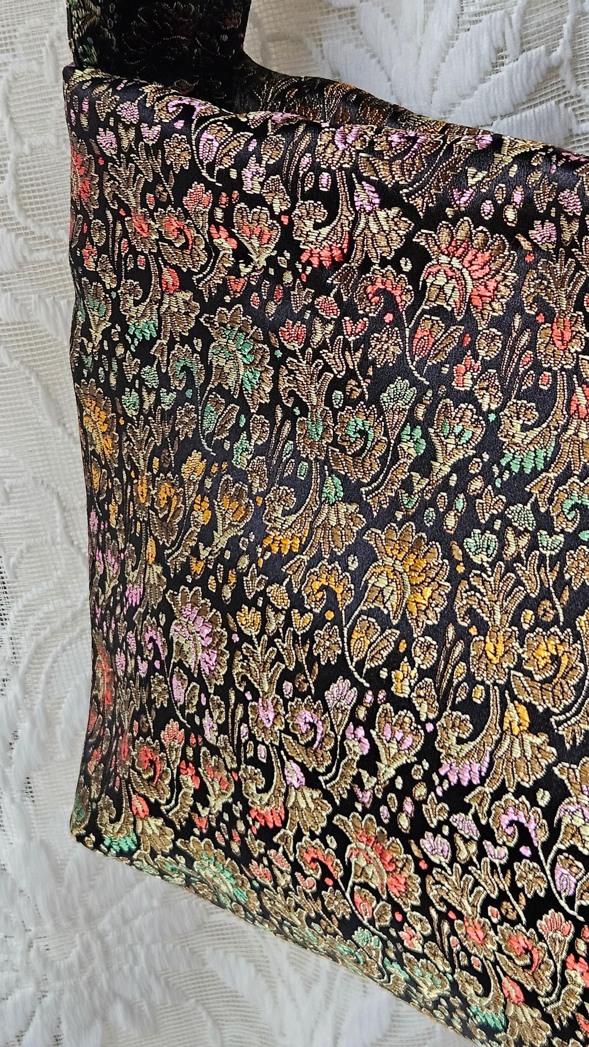 Tissu principal : jacquard irisé noir motif floral multicolore